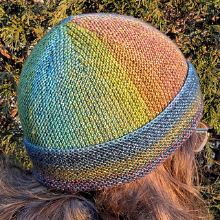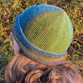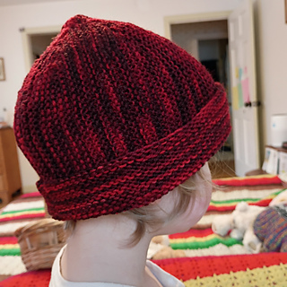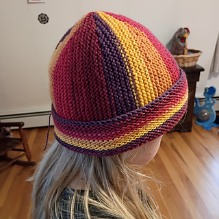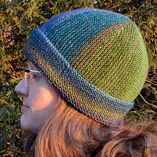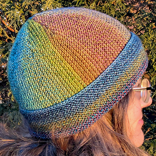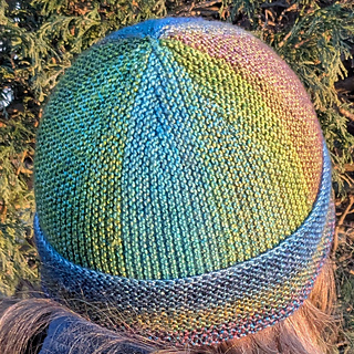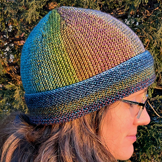 The Second Act Hat is perfect for variegated or color-changing yarns. Garter stitch rows travel in two directions across this easy, quick-to-knit project.