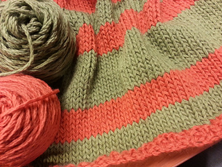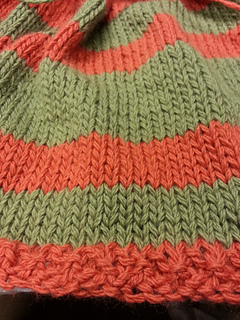 This is an uneven striped blanket in super bulky yarn with a seed stitch border.