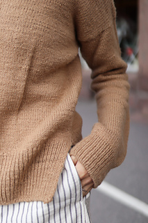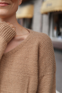 Seele-neule neulotaan ylhäältä alas suljettuna neuleena, aloittaen niska-hartiaseudun ja pääntien muotoilulla. Hihojen ja pääntien i-cord-reunuksen silmukat poimitaan työn reunasta ja neulotaan suljettuna neuleena. Kuvan henkilön rinnanympärys on 85 cm ja hänellä on yllään koon 1 neule, jonka rinnanympärys on 108,5 cm. Paita on sarjoitettu neljään kokoon, joista voit valita itsellesi mieluisimman. Kokotaulukko löytyy ohjeen viimeiseltä sivulta.