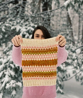 This cowl is designed for a Worsted-weight yarn in four colors.