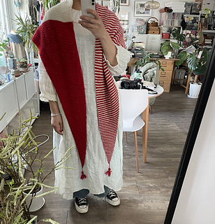 The Segment Shawl is a triangular shawl built from stacked sections of color. Its simple repeat makes it relaxing to knit, and the design naturally highlights the beauty of different color combinations. The size is fully adjustable, so it can be made from petite to large.