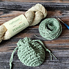 Wir häkeln in Runden von innen nach außen und dann in einem Stück nach oben, schließen jede Reihe mit einer Kettmasche und fädeln zum Schluss die beiden Bändel zum Zuziehen ein. Wie genau, steht in der Anleitung.