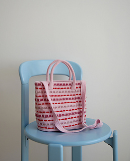 Seley Bag is worked in the round from the bottom up. First the base is worked in double crochet through both loops working around a yarn end in the same colour to stabilise it. Then the sides are worked in double crochet through the back loop and spike stitches for pattern. The bag is made up with short handles and a shoulder strap – both worked back and forth. The bag’s base, sides and short handles are all reinforced with interfacing.