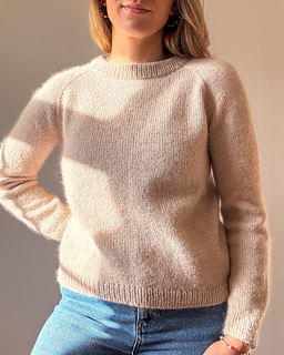 You will begin by working the folded collar, and will then continue to some German short rows which are used to shape the neckline. From there, you will work raglan increases at various rates to ensure a good fit across the chest and upper arms across the size range. Once the yoke is complete, you will leave the sleeve stitches to rest whilst you work the length of the body, which is finished with 1x1 rib. Finally, you will work each sleeve in turn, shaping them with decreases to taper the sleeve and, again, finishing with a 1x1 rib cuff.