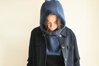Senja is a timeless hood that enhances winter outfits by providing comfort and warmth. It is knitted seamlessly from the top down ans extends into a bib that protects the chest from the cold temperature. The edge around the face is finished with a 1/1 ribbing. It’s the essential accessory for facing winter!