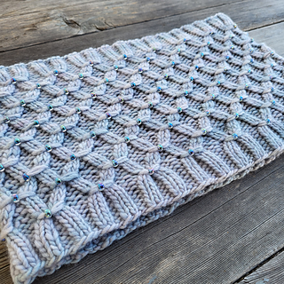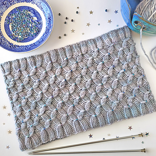 The plush, squishy stitch pattern creates a fabric that is deeply warm and comforting, while delicate beads catch the light like sunlight sparkling on freshly fallen snow. It’s an easy, soothing knit that feels as beautiful to make as to wear. When the season turns gray and dreary, add a quiet shimmer and a bit of radiance to your days with Seraphine.