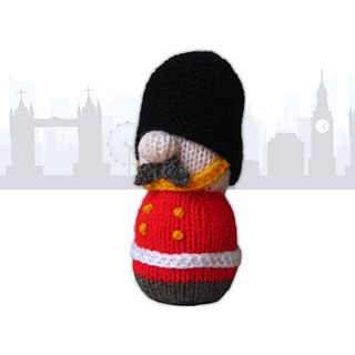 A-ten-shun! Sergeant Major Busby is standing guard at Knittingham Palace. Designed by Amanda Berry @fluffandfuzz, this soldier is knitted in acrylic DK yarns on single pointed needles (not in the round).