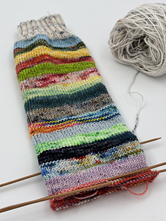 A handy table shows how many stitches you need to cast on so the sock fits properly over or on your calf. Then you gradually decrease stitches towards the lower leg. You make the leg as long as you like, up to mid-calf or all the way to the knee.