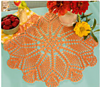Round orange doily with fan border.