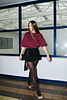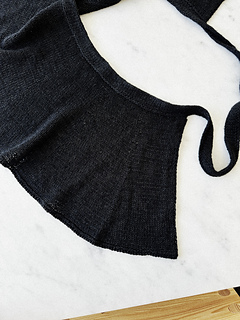 The wrap around skirt is knit flat from the top down and shaped with increases. The belt is knit in double knitting and worked at the end.