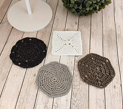 E’ possibile usare il filato e l’uncinetto desiderato e le misure finali di ogni sottobicchiere potrebbero variare.