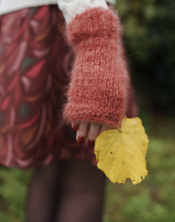 Les mitaines : Jersey : 10 cm = 13 mailles x 22 rangs (aig. 5,5 mm)