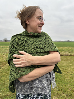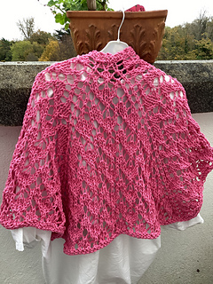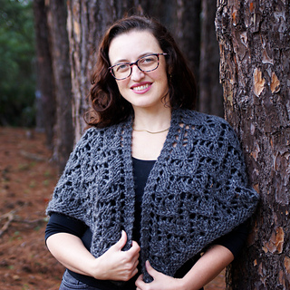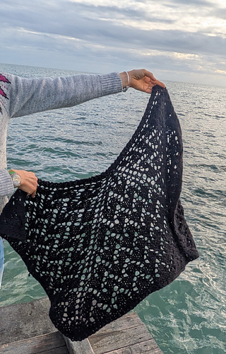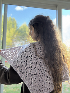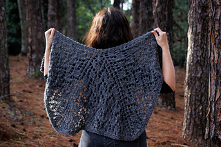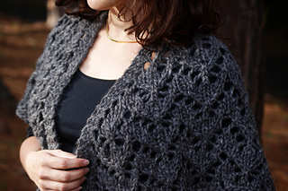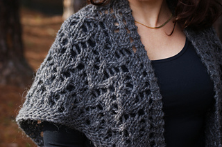 Knitted with large needles and featuring simple lace, this is a fast and satisfying project you can finish in just a few days. The pattern is easily adjustable: you can repeat the lace section as many times as you like to achieve your desired length. The result is a shawl that feels dramatic, modern, and fun.