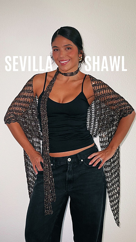 Inspired by the elegance of flamenco, the spirit of Spanish gitanas, and the charm of Seville, the Sevilla Shawl is light, fluid, and full of movement. Made with sequins yarn, it drapes beautifully and sparkles delicately in the light. This versatile piece can be styled in countless ways and instantly brightens any simple outfit. It also makes a perfect gift, and you may find yourself wanting to make more than one.