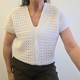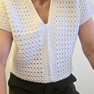 Elegant lacy blouse with sophisticated V-neckline and clean ribbed border.