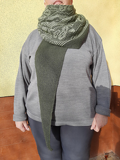 Shade to duża, trójkątna chusta o wyraźnym, lecz wyważonym charakterze — idealna zarówno jako codzienne okrycie, jak i dopracowany dodatek na chłodniejsze dni.