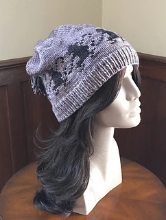 21 sts/27 rnds to 4”/10 cm in stockinette stitch on smaller needles; same in stranded patt on larger needles. Measure gauge on lightly blocked swatch; blocking is optional for ribbed and St st portions of hat, but stranded band should at least be steam blocked to even stitches.