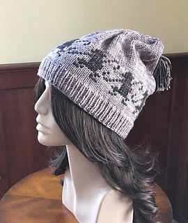 This hat is worked in the round from the bottom up, and is shown with an optional tassel.
