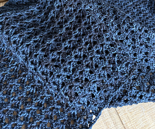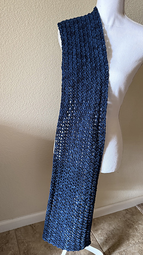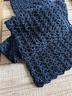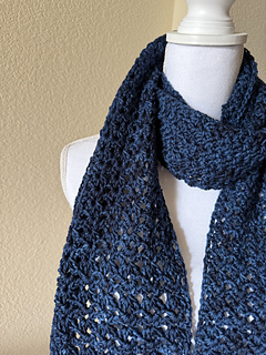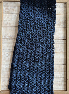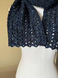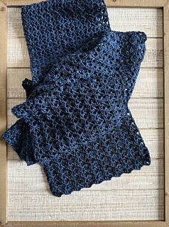 Worked from the center out toward one end, then you pick up stitches from the starting chain to work out toward the other end. This allows the stitches to point toward each end of the scarf, and really gives you flexibility on how long you want it while easily maintaining the pattern.