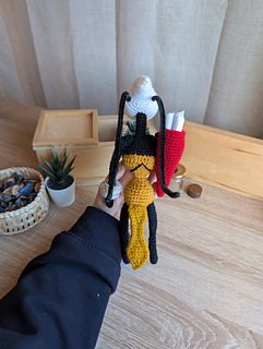 This crochet pattern details how to crochet Shakra inspired by Silksong.