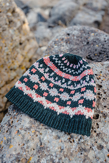 This hat is designed with newer colorwork knitters in mind. The motifs are worked with just two colors per round, floats are kept short and manageable, and shaping is simple and intuitive. The smaller circumference makes it an excellent project for practicing colorwork tension and dialing in gauge before committing to a larger garment.