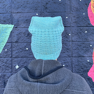 Height: approximately 12” / 30.5 cm unfolded for both sizes. Hat is stretchy and can be worn with up to 4” / 10 cm of negative ease. Height is adjustable by adjusting the length of the brim OR body section.