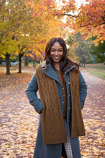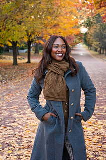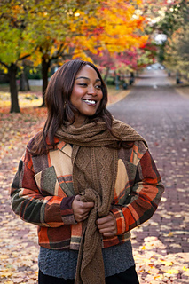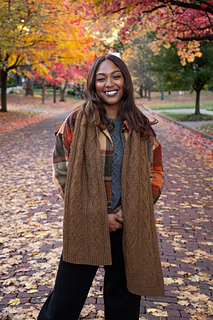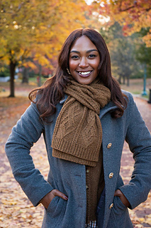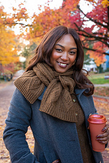 This handsome scarf, with its bold twist stitch panels is sure to make a statement! But it’s also warm and cozy, with enough width and length to pile high around the neck or drape down the front of a plain coat when making an entrance. The length is easily adjusted to suit your yarn supply and/or desire to keep knitting this intriguing pattern. This one makes a showstopping gift that knits up quickly in worsted weight yarn.