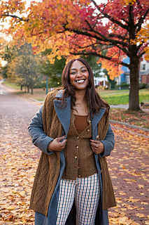 Substituting yarn and/or needles may result in an overall variation in size, drape, and yardage requirement.