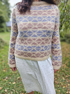 Le pull se tricote d’une seule pièce en circulaire en commençant par le haut. Une série de rangs raccourcis est réalisée pour échancrer l’encolure. Ensuite vous allez mettre en place votre motif de jacquard et commencer les augmentations de raglan. Les mailles des manches sont mises en attente et le corps est ricoté en circulaire jusqu’en bas.
