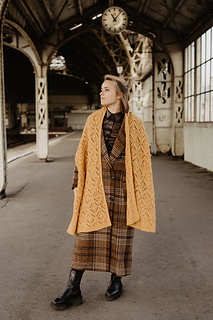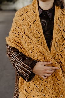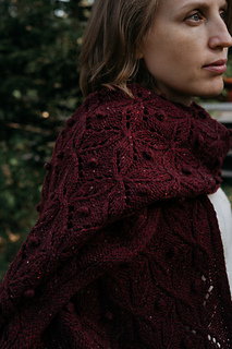 The shawl features a harmonious blend of 1x1 ribbing, reverse stockinette, and an intricate cable pattern, providing both texture and elegance. Perfect for those chilly evenings or as a stylish accessory, this shawl is an ideal project for knitters who love to create beautiful, functional pieces.
