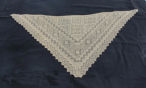 Это треугольная оренбургская шаль. Вяжется по гипотенузе. То есть сначала вяжется ленточка левых зубцов, затем поднимаются петли для тела и затем вывязываются одновременно правые зубцы, тело и верхние зубцы.