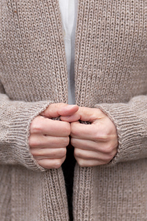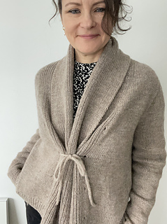 This cardigan is seamlessly constructed from the top down, using carefully placed increases to create a beautifully tailored fit. Knitted in soft alpaca yarn, it feels warm, light, and effortlessly comfortable throughout the day—perfect for the office or relaxed everyday wear. The removable I-cord tie lets you close the cardigan neatly or style it in different ways, giving you a versatile piece for many occasions.