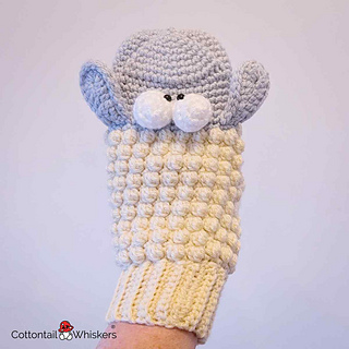 Our Sheep Mitten crochet patterns. Create ingenious sheep gloves or crocheted lamb puppets. Many pages of photo tutorial guide notes and ‘how-to’ explanation from Cottontail & Whiskers. Keep hands warm on cold days with this crochet pattern to keep, view, download and print whenever you need.
