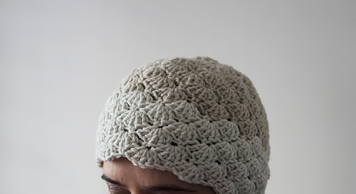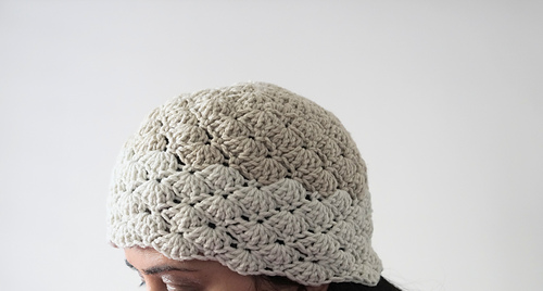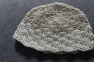 The hat is worked with shell stitch from the start, it is slightly different from the usual flat worked