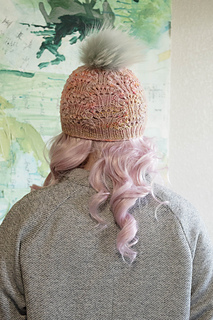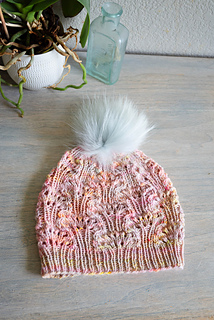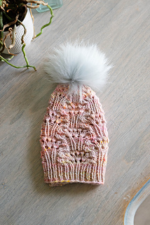 This beanie is worked from the bottom up to the crown. Begin with simple ribbing and then work the lace chart through to the end. Piece of cake!