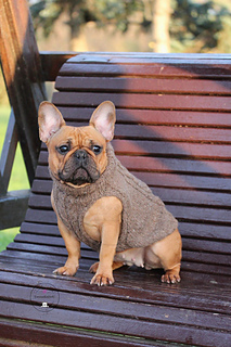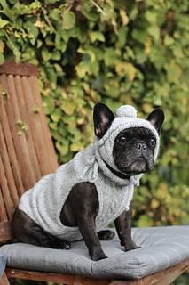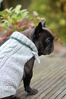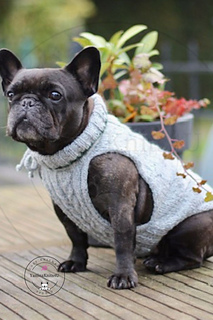 CONSTRUCTION NOTES. French Bulldogs have a unique body shape with round contours, a broad chest, and a compact frame. Because of their structure, a well-fitting sweater needs special design elements, such as a wider chest area, a tailored belly cut, and flexible armholes to ensure comfort and ease of movement. These adjustments help create a snug yet comfortable fit that doesn’t restrict their mobility.