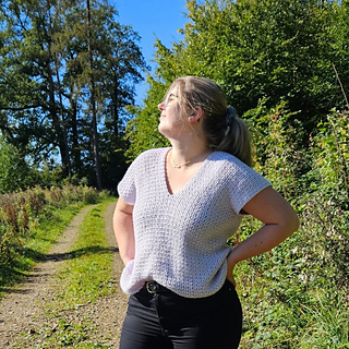 The Shiny Blossom t-shirt is a quick and easy project with very little assembling. The whole thing is worked from one side to the other in one piece and needs to be sewn together only on the sides and the sleeves. The fit is cozy and a bit oversized. It can be worn in summer and other seasons as well. All stitches used in this pattern are beginner-friendly.