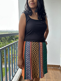 Shobha Skirt - A beautiful pick for any day or event with overall motifs in mosaic crochet making the perfect statement attire that needs no more accessorizing and just ready to make heads turn! Its simple construction in mosaic crochet makes the project easy to make and suits all seasons.