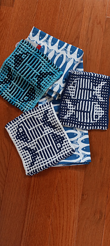 Choose contrasting solid colors or try a semi-solid tonal yarn for one of the colors. Try your camera’s “black & white” setting to look at your yarns in grayscale and check the contrast between your selection(s). The pattern provides full written instructions with (optional) positive and negative charts for making useful household linens and gifts!