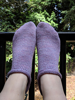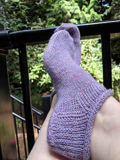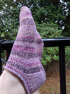 No ribbing required! Just CO and knit. Socks have more negative ease, resulting in a tighter fitting sock. Gauge swatching is important for this pattern, due to the snugger fit.