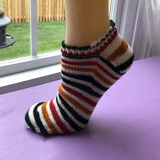 These socks were designed when I recently found myself in need of ankle socks. I had some Bis-sock yarn left over in the Hudson’s Memories colorway that I did not want to waste, but knew I didn’t have enough left for anything other than ankle socks. The pattern is worked toe up, and would be great worked two at a time, since it is a very simple pattern. I used about 42 grams (180 yards) of fingering weight sock yarn for these socks, and made the small size. This uses my normal base pattern, which has been tech edited, but I did not have this specific pattern tested or edited.