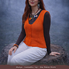 Model ma prosty, luźny krój (bez taliowania) i głęboki dekolt z przodu oraz z tyłu. Może być noszony jako letni top na gołe ciało lub jako kamizelka na inną część garderoby.