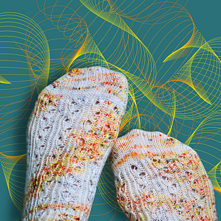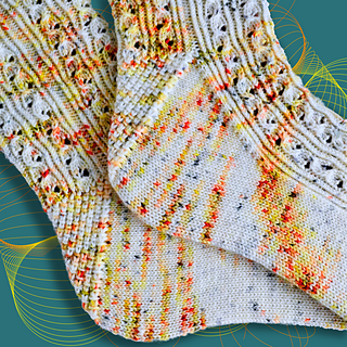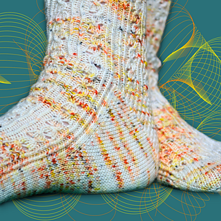 I just love the way that the simple lace pattern wiggles up the sock. I’ve also included some twisted rib into the pattern mix to ensure a snug fit around the foot and ankle. Taken together, the vertical lines of twisted rib and the wiggly lines of the lace stitch pattern provide a lovely harmonious balance—don’t be surprised if you feel a Zen-like glow when you knit these socks.