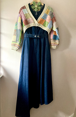 The sample cardigan i made to develop this pattern has become a much loved and heavily used addition to my wardrobe, I have found it goes with practically every dress I own thanks to the multitude of colours used to create it. I am a standard UK 12 and it is a lovely loose fit on me.