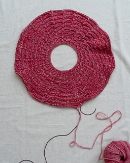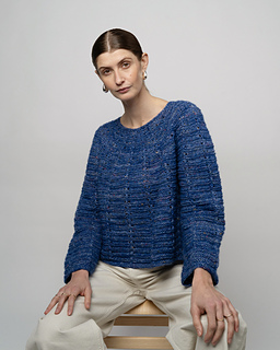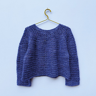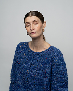 Silda Pullover is worked from the top down in a small lace pattern. The circular yoke is shaped by increases integrated into the pattern. All hems are worked in garter stitch.