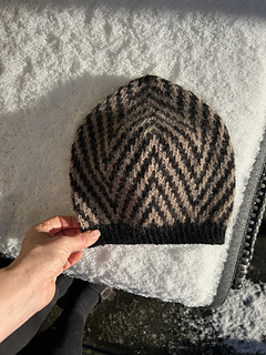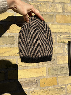 Sildeben Hue strikkes i 2 farver efter skema. Huen strikkes oppefra og længden kan dermed nemt tilpasses efter eget ønske. Strikkes huen i garnrester, kan den ligeledes strikkes indtil der ikke er mere garn. Den opgivne garnmængde passer med den opgivne højde. Som udgangspunkt er størrelse S beregnet til børn og størrelse M og L til større børn og voksne.