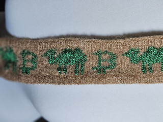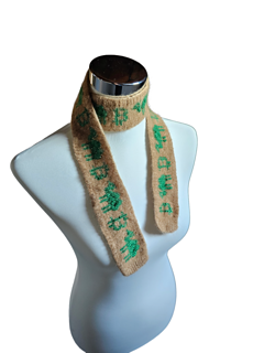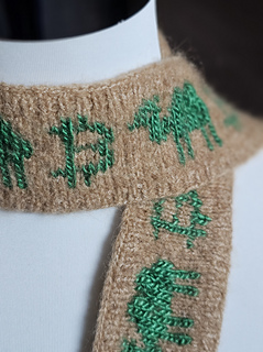 A small long scarf with rib pattern and stranded colorwork.