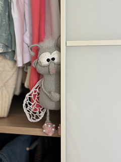 And the cherry on top? The pearls on my feet — my cozy pink house slippers. You’ll crochet them so well that they won’t fall off, even when I’m posing like a star.