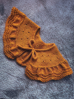 The gauge will determine how large the collar/cape will be, if you have more stitches/rows per cm/inch the collar/cape will end up smaller than intended, if you have less it will be bigger. This therefore can be used to make a smaller size for a toddler/baby or bigger for a larger adult.