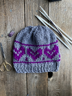 The Silver Falls hat shows my love for Silver Falls State Park in Oregon! The row of hearts is easy enough for an adventurous beginner to try as their first project with two colors. And if you could use some tips, I have a video with tips specifically for this hat on my YouTube channel! http://bit.ly/SonickaKnits
